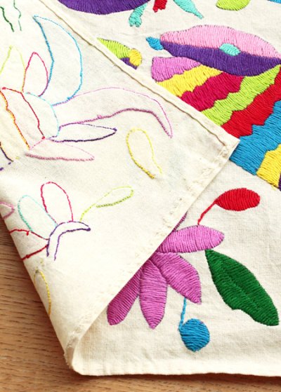 メキシコの先住民・オトミ族の村で作られる、愛らしい動物や植物の刺繍クロス。