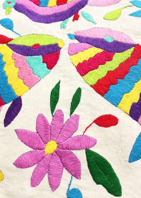 とても細かく緻密なオトミのステッチで描かれるその刺繍技術はすばらしく、隙間なくきれいに施されます。