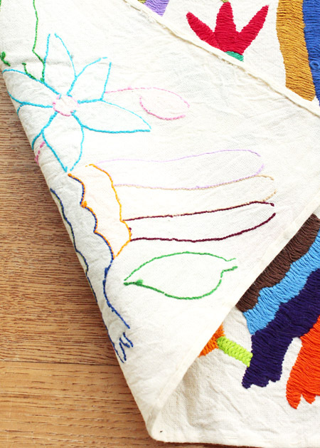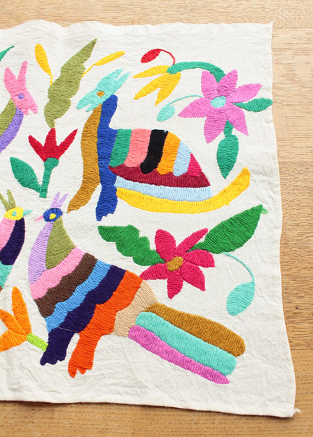 メキシコの先住民・オトミ族の村で作られる、愛らしい動物や植物の刺繍クロス。