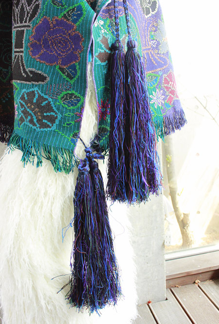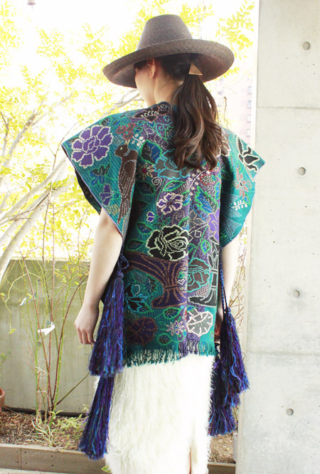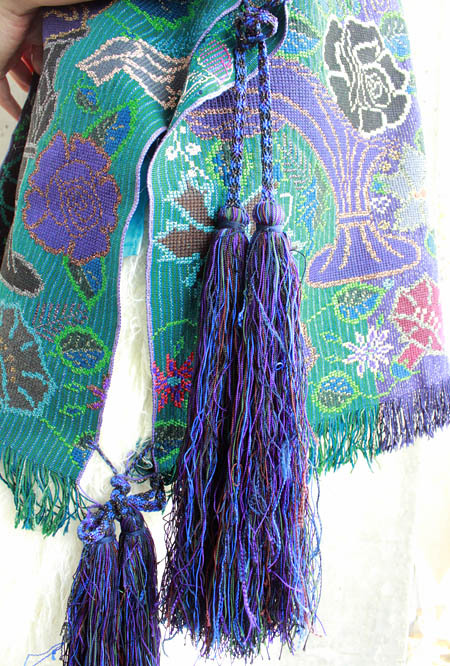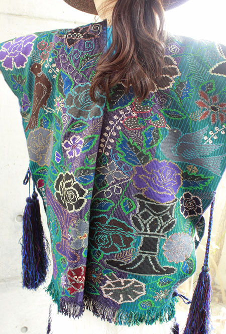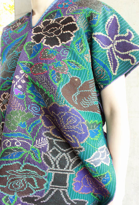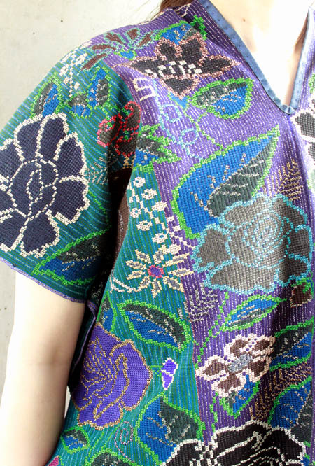 全面に刺繍された大ぶりの花や鳥のデザインは民族衣装でありながら斬新な印象です。