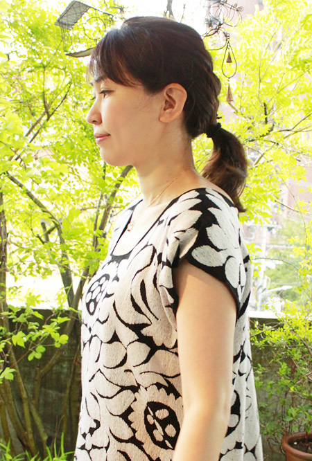 ウイピルは四角い布に手を通す形ですが、着ると肩が落ちて体に布が沿い、
