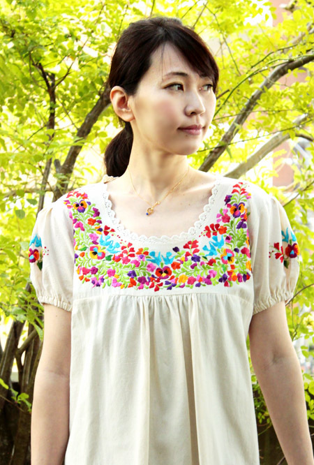 伝統的な民族衣装ではなく、洋服の形になったマリアさんのブラウスが入荷しました。