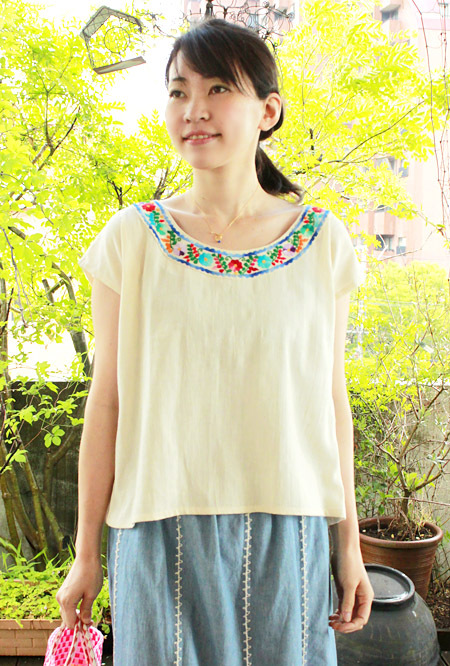 プエブラ刺繍のウイピルトップス