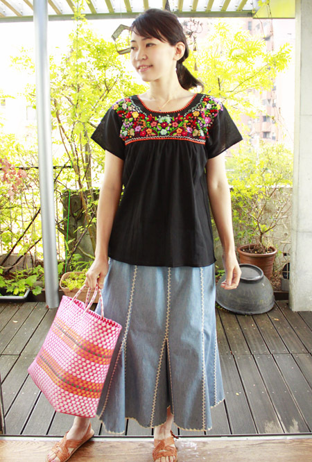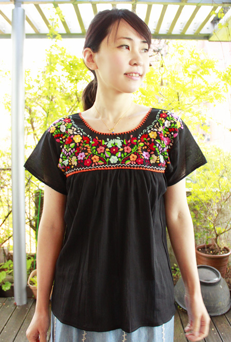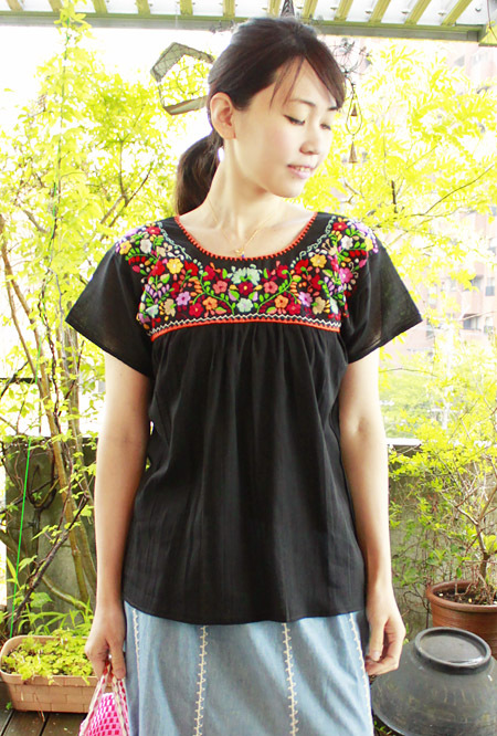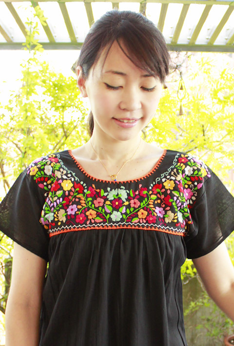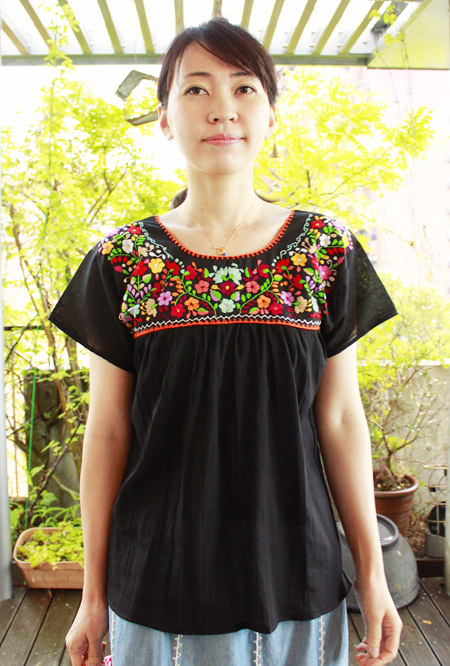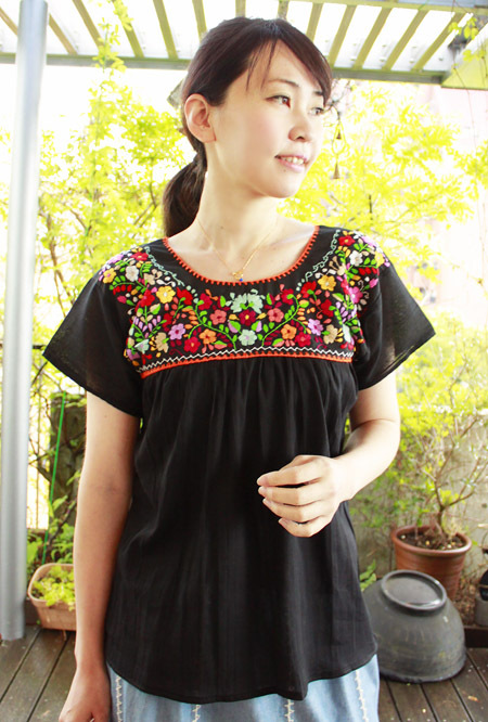 メキシコ刺繍のマンタ生地トップス