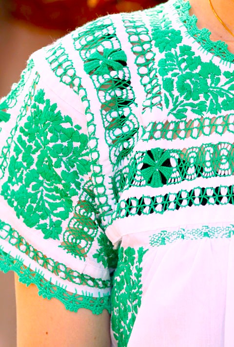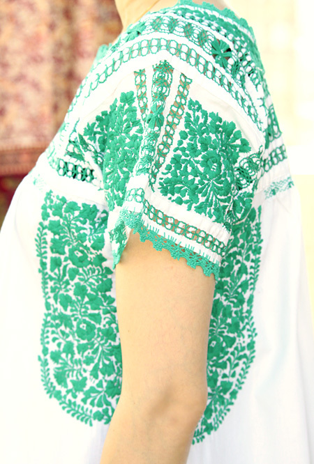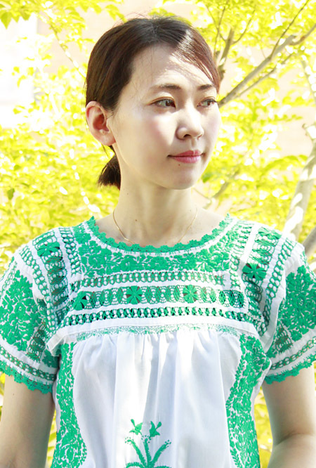 見ていて飽きない細かい刺繍。オアハカに咲く季節の花を思いを込めて刺繍にします。