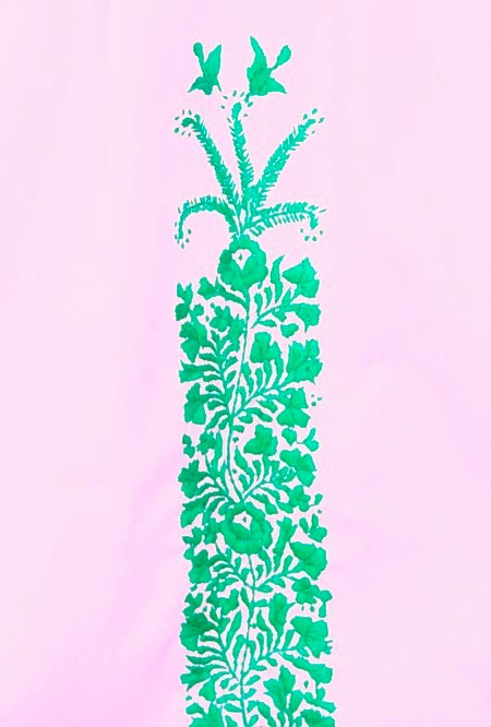 写真の刺繍は少し明るいエメラルドグリーンに写っていますが、実際は濃いターコイズグリーンです■。