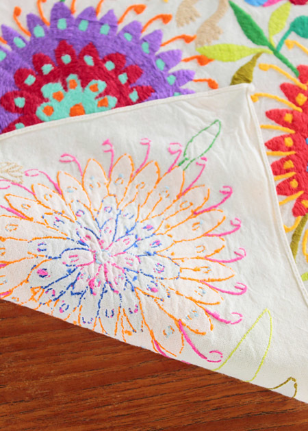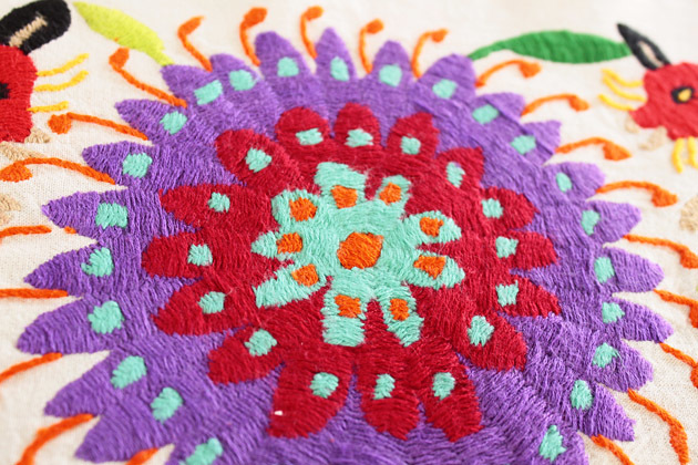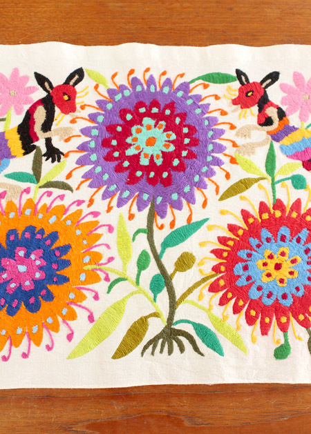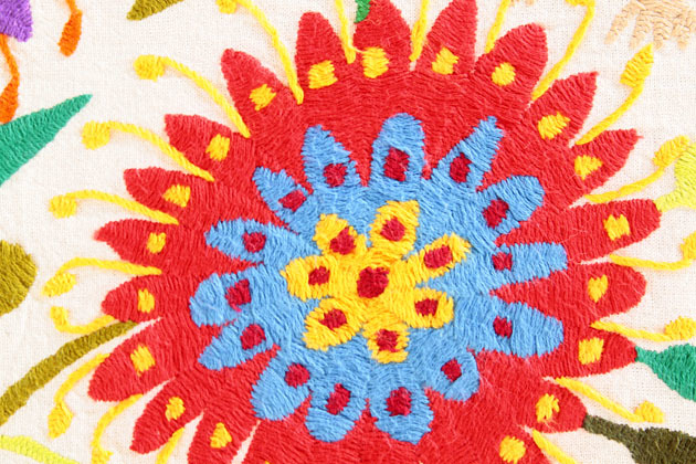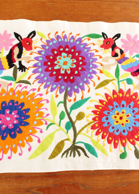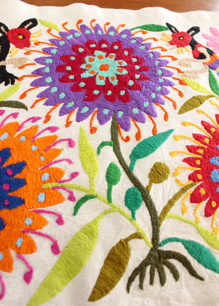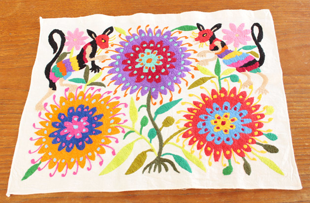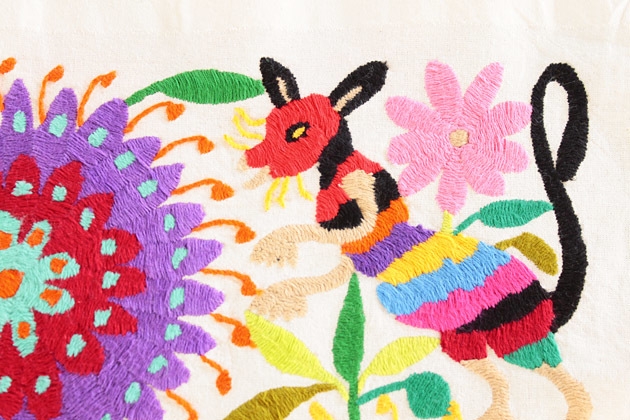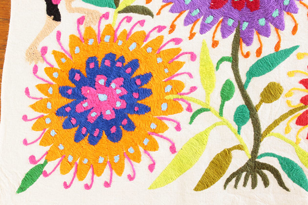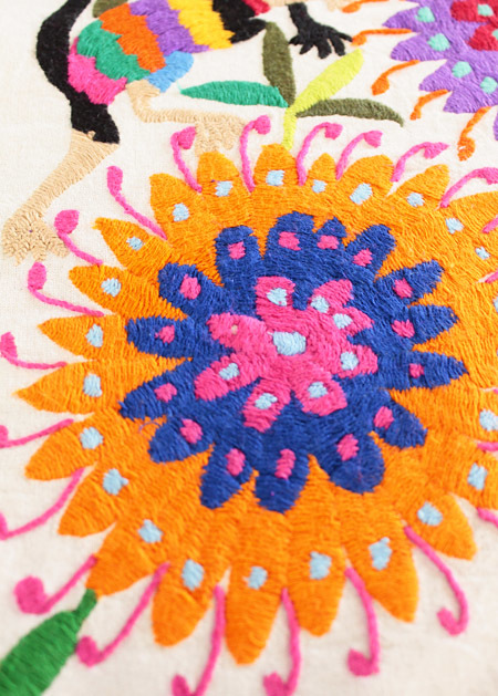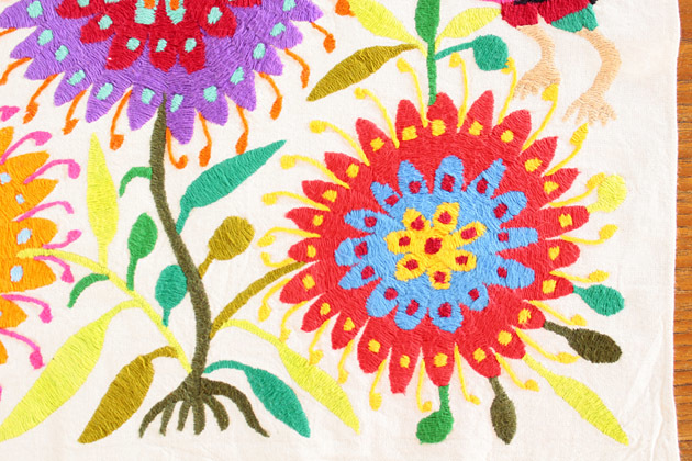 メキシコオトミ族の手刺繍 特大絵 テーブルクロス