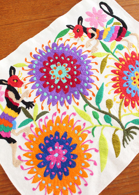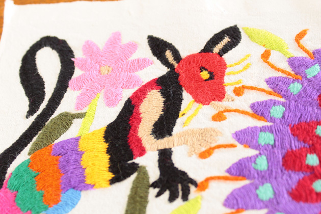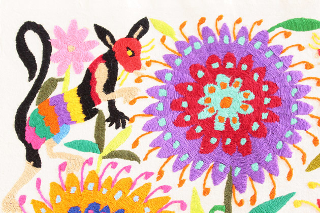 このテナンゴ刺繍と呼ばれるメキシコ、イダルゴ州のオトミ族の刺繍は