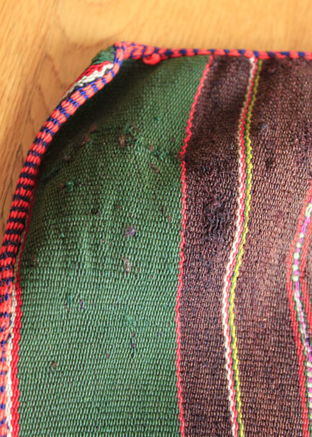 近年ではお土産用の機械織りの物をたくさん持かけますが、上質の物はなかなか手に入らなくなっています。