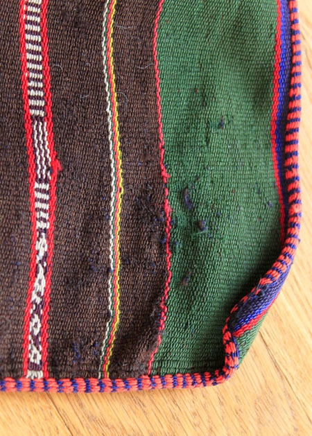 織のゆるみ、小さな引っ掛けや穴が多くありますが、使い込まれているのでそこからほどけることはありません。