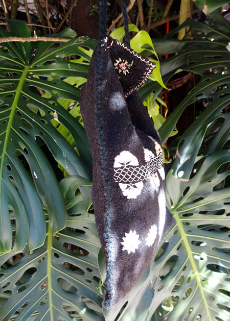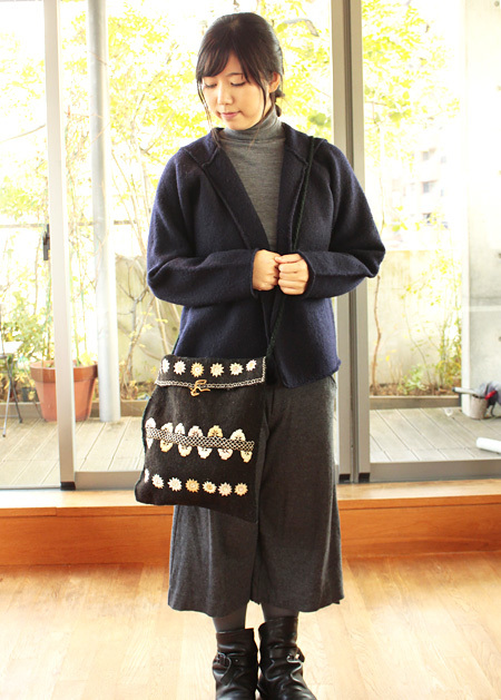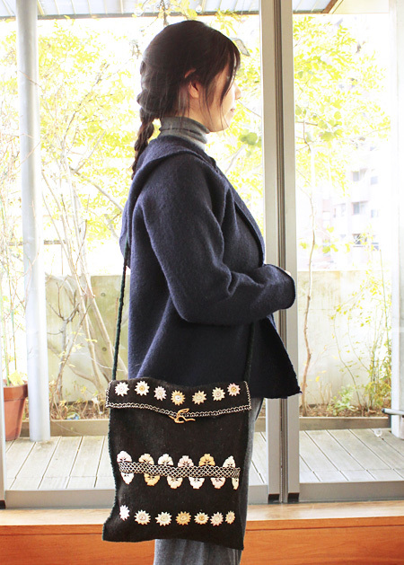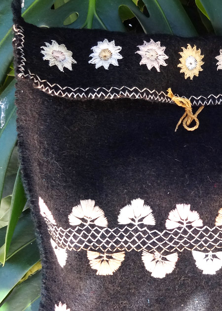 手つむぎ・手織りウールの刺繍チャムラバッグ大 [チアパスブラックL]