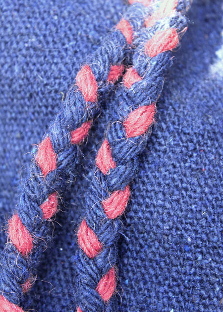 細い糸で手織りし、太い毛糸を織り込んでいます。