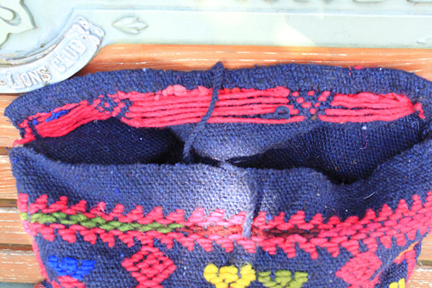 インディヘナの女性が手織りで手作りした、ひも付きバッグです。
