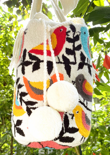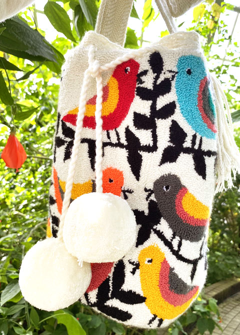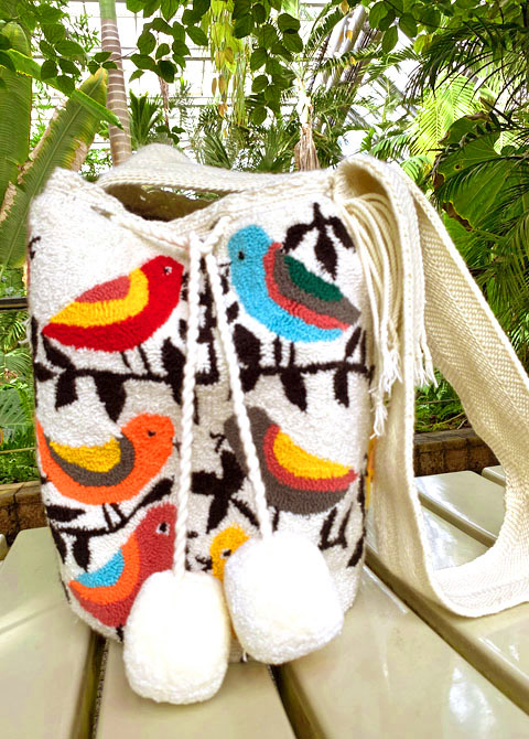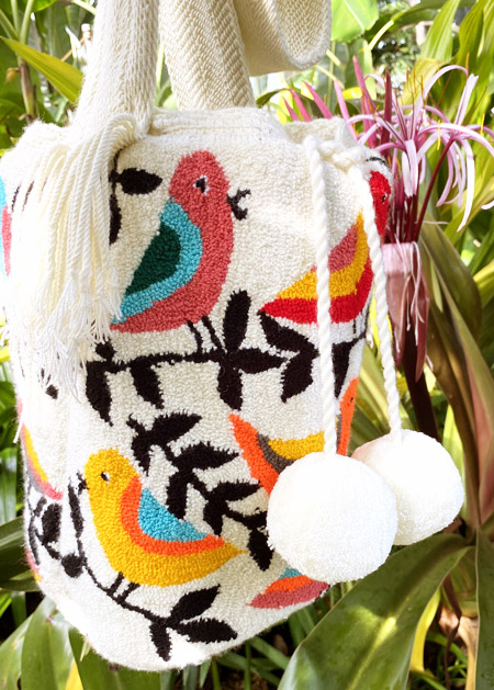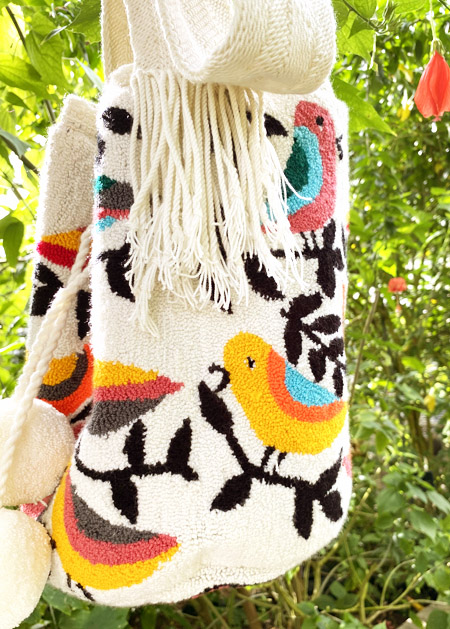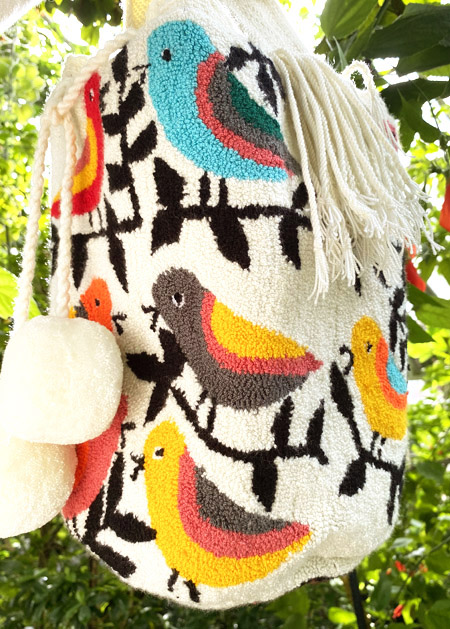 WAYUU族のパンチング刺繍バッグ [MOCHILA-小鳥]