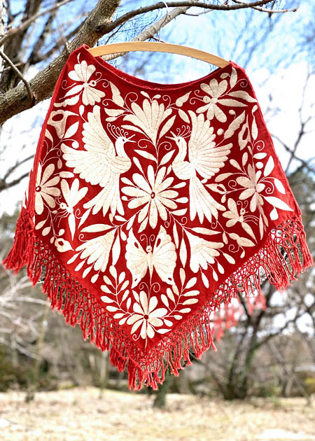 「オトミ族の刺繍ポンチョ」