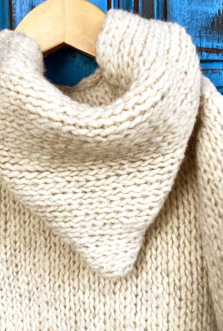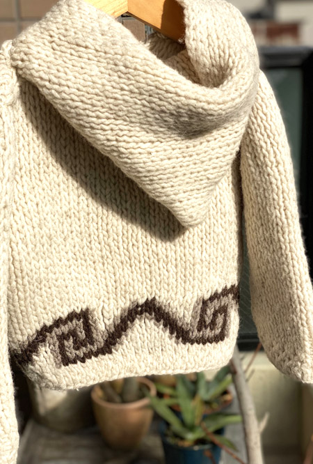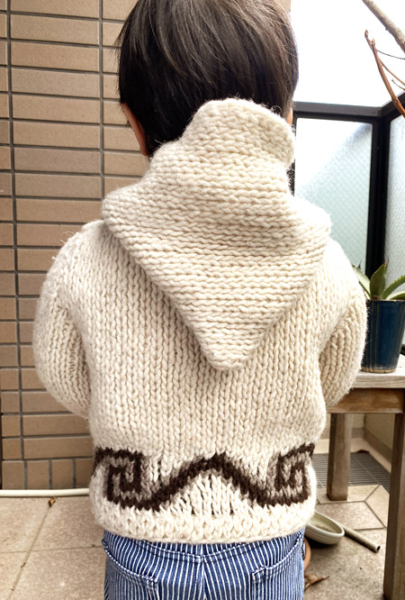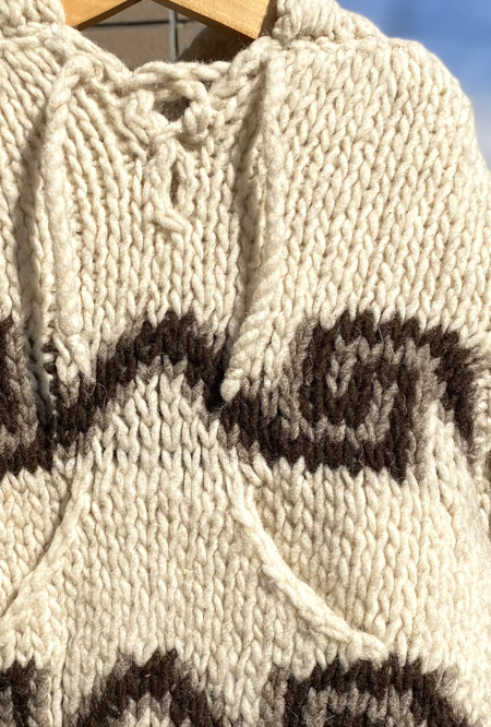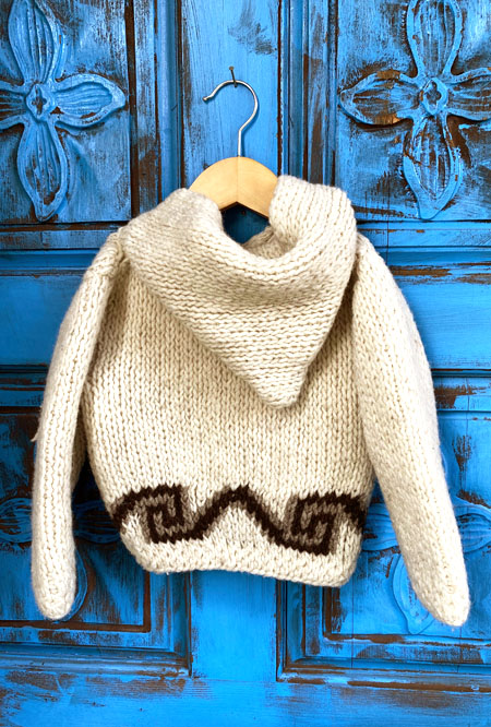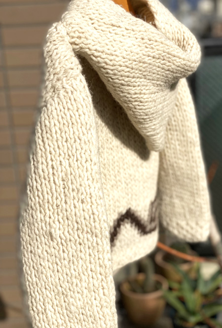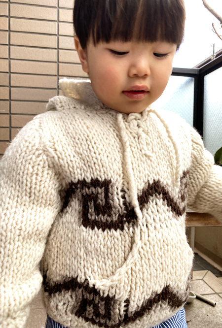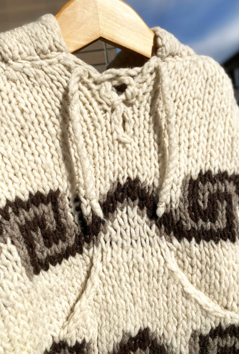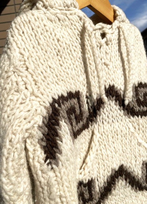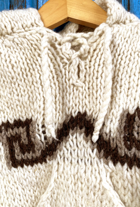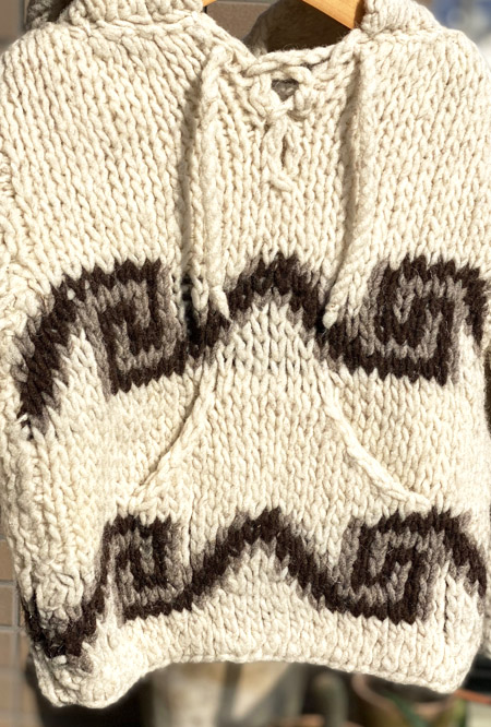 メキシカンパーカーの形にざっくりと編まれた可愛いニット。男女兼用です。