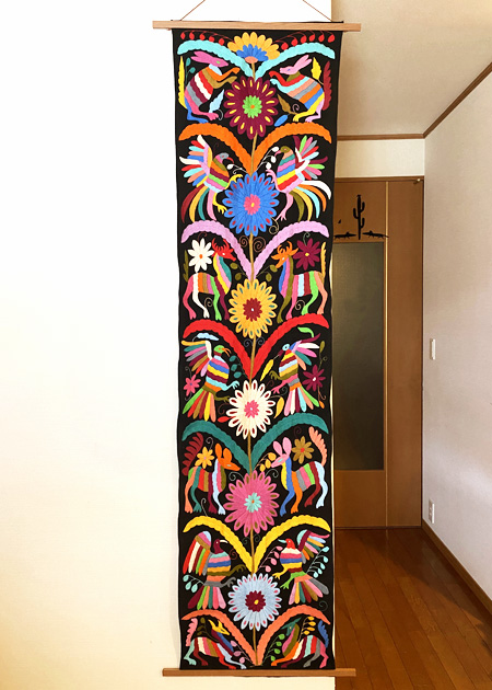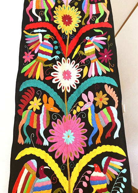オトミの刺繍タペストリー テーブルセンター [ブラックオトミ188cm×48cm]