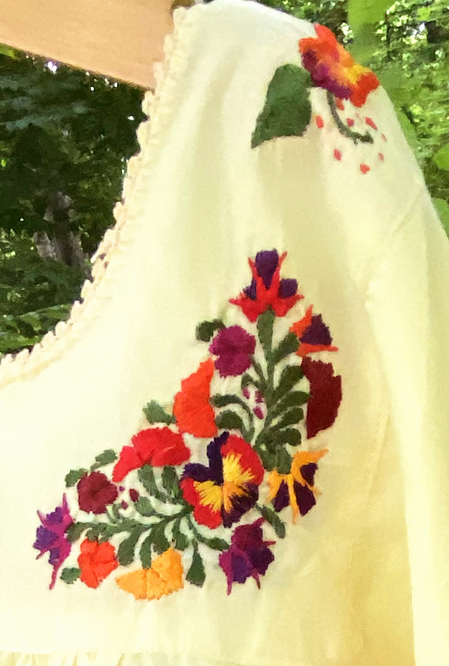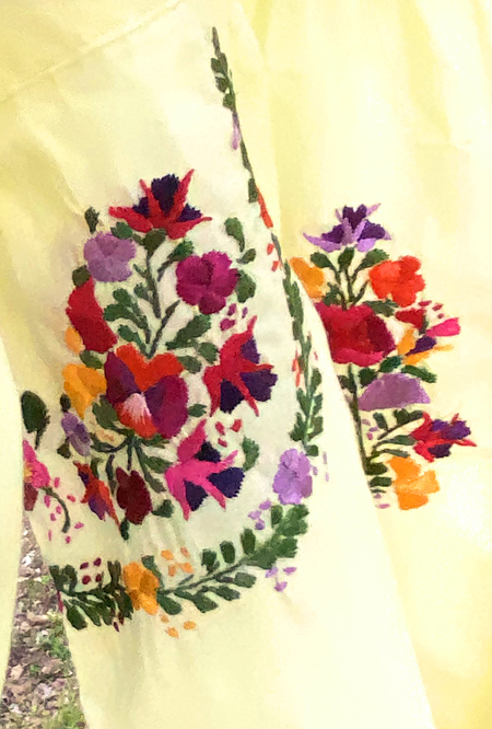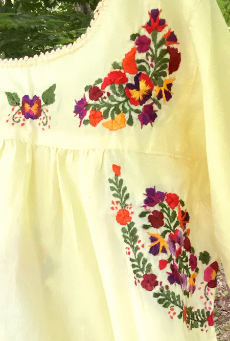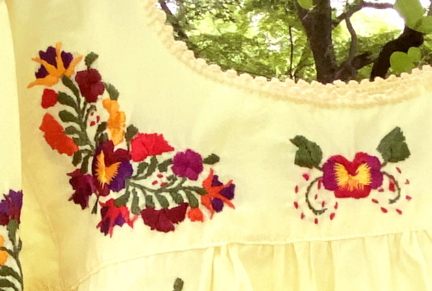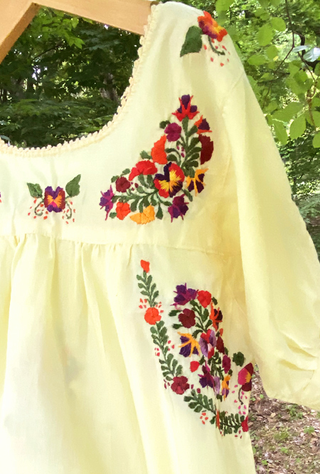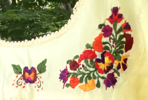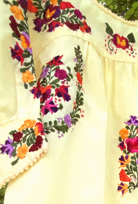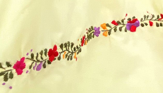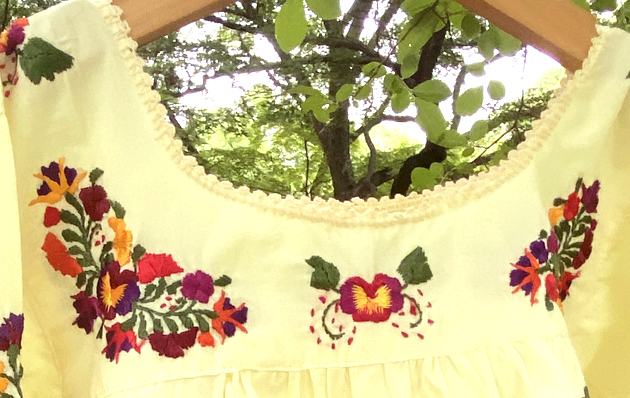 見ていて飽きない細かい刺繍。オアハカに咲く季節の花を思いを込めて刺繍にします。