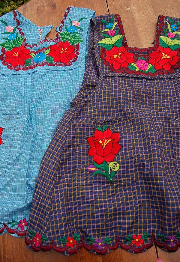 オアハカの村ムラでは、民族衣装の上にこんな可愛らしいエプロンをつけている人たちがいます。