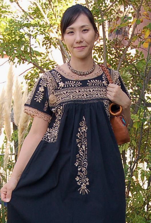 メキシコ刺繍のワンピース「サンアントニーノ」 ブラック × ベージュ糸